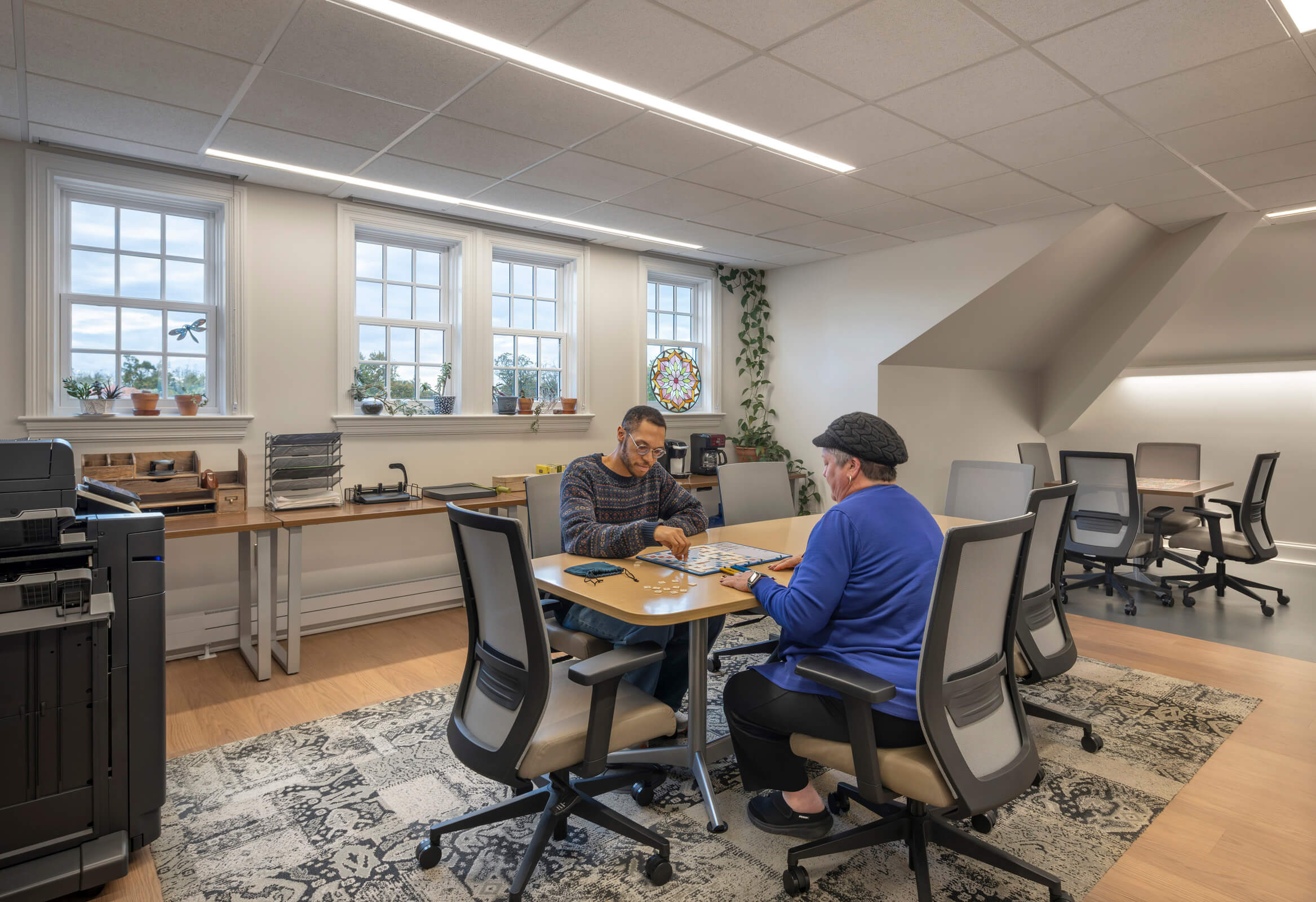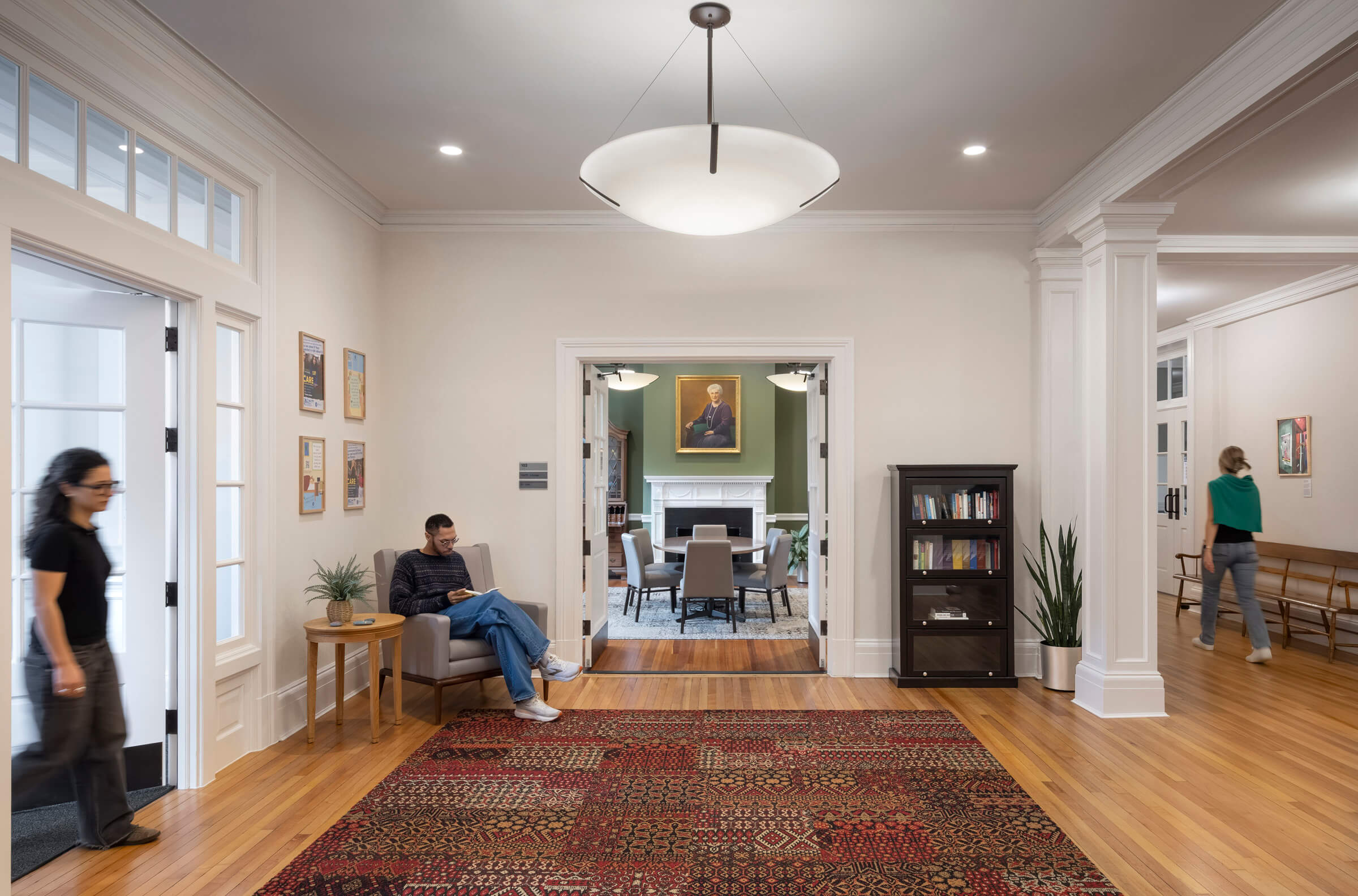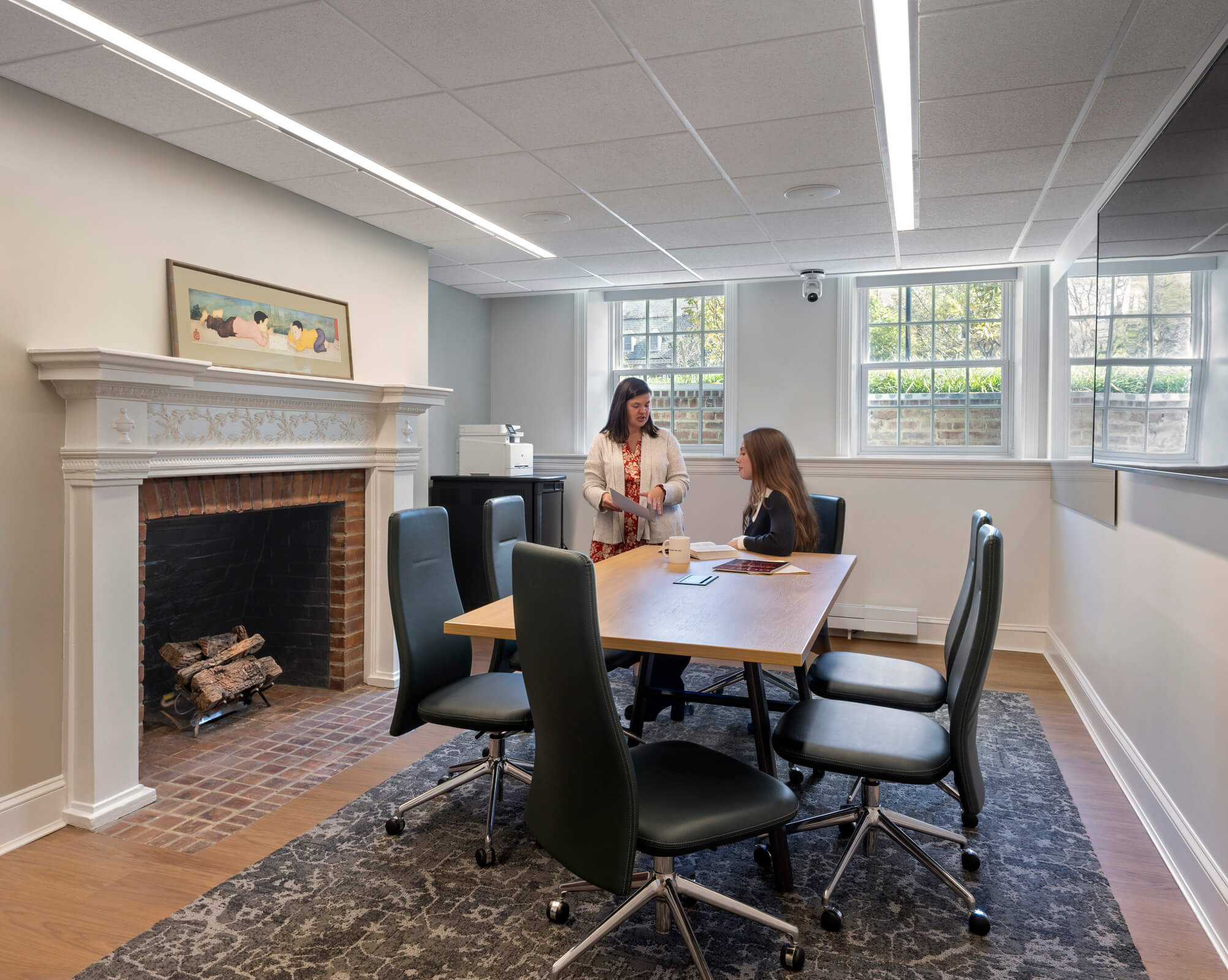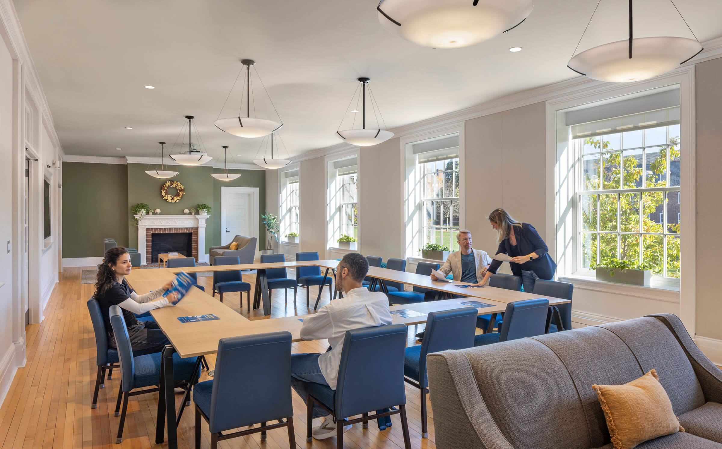Exterior renovation consists of new windows and entrance doors, and refresh exterior brick. Interior work includes demolition and reconfiguration of walls, new finishes, insulating of exterior walls, adding an elevator, and installing new building systems to the building. The goal is to preserve the historic architectural character of the building as well as to provide flexibility to accommodate future growth.