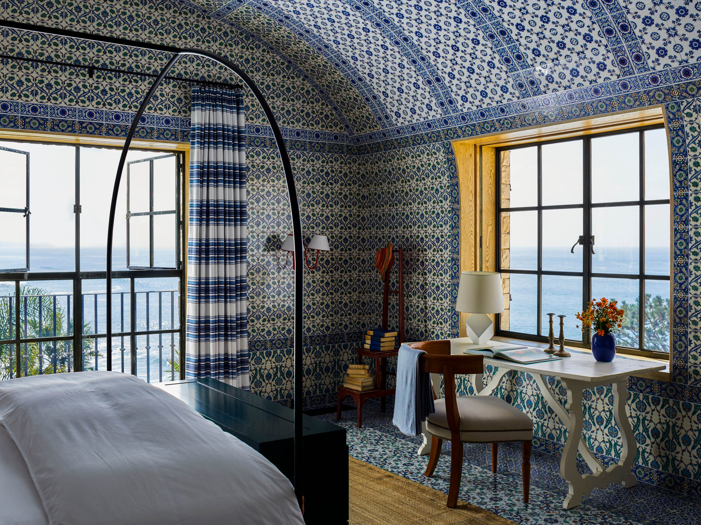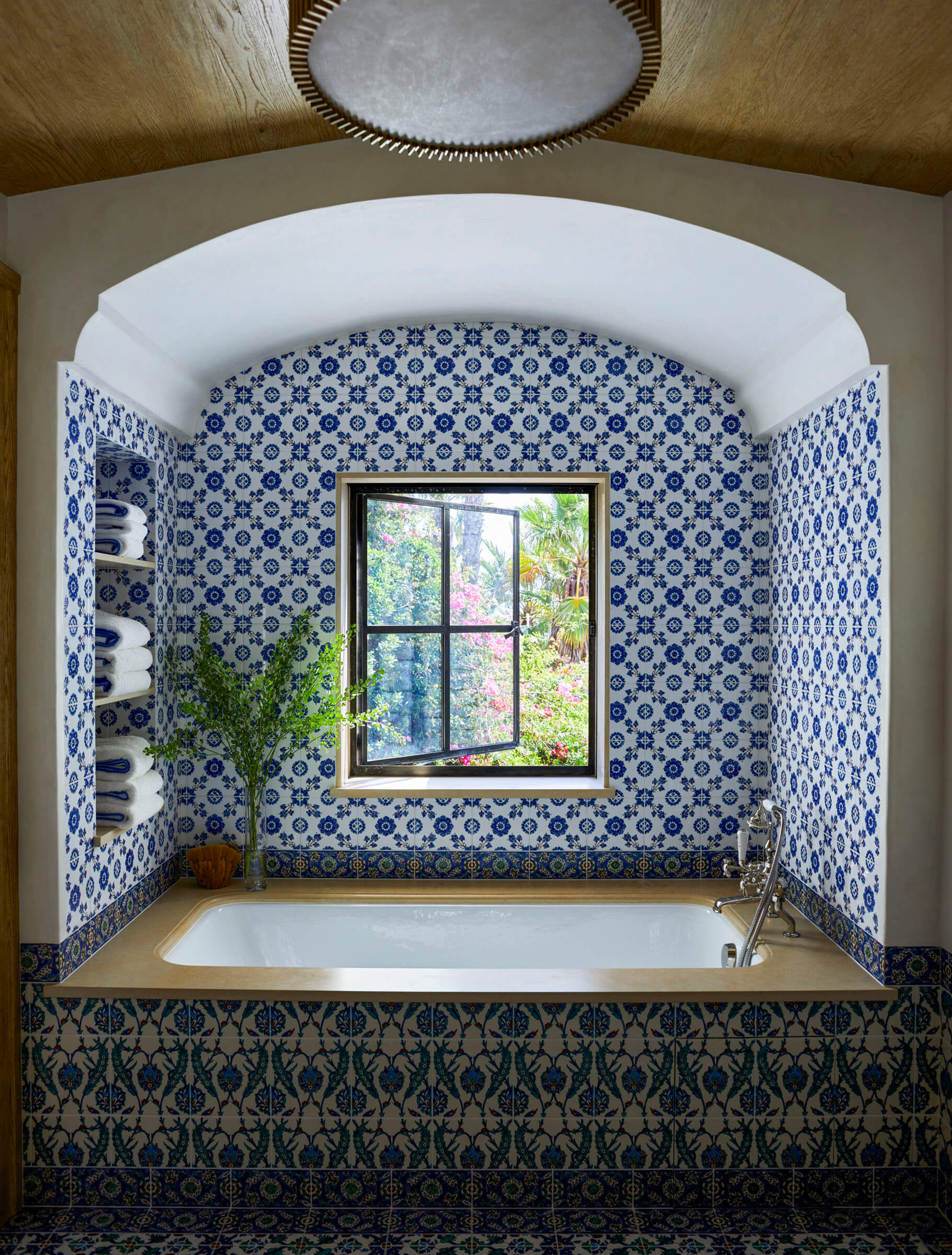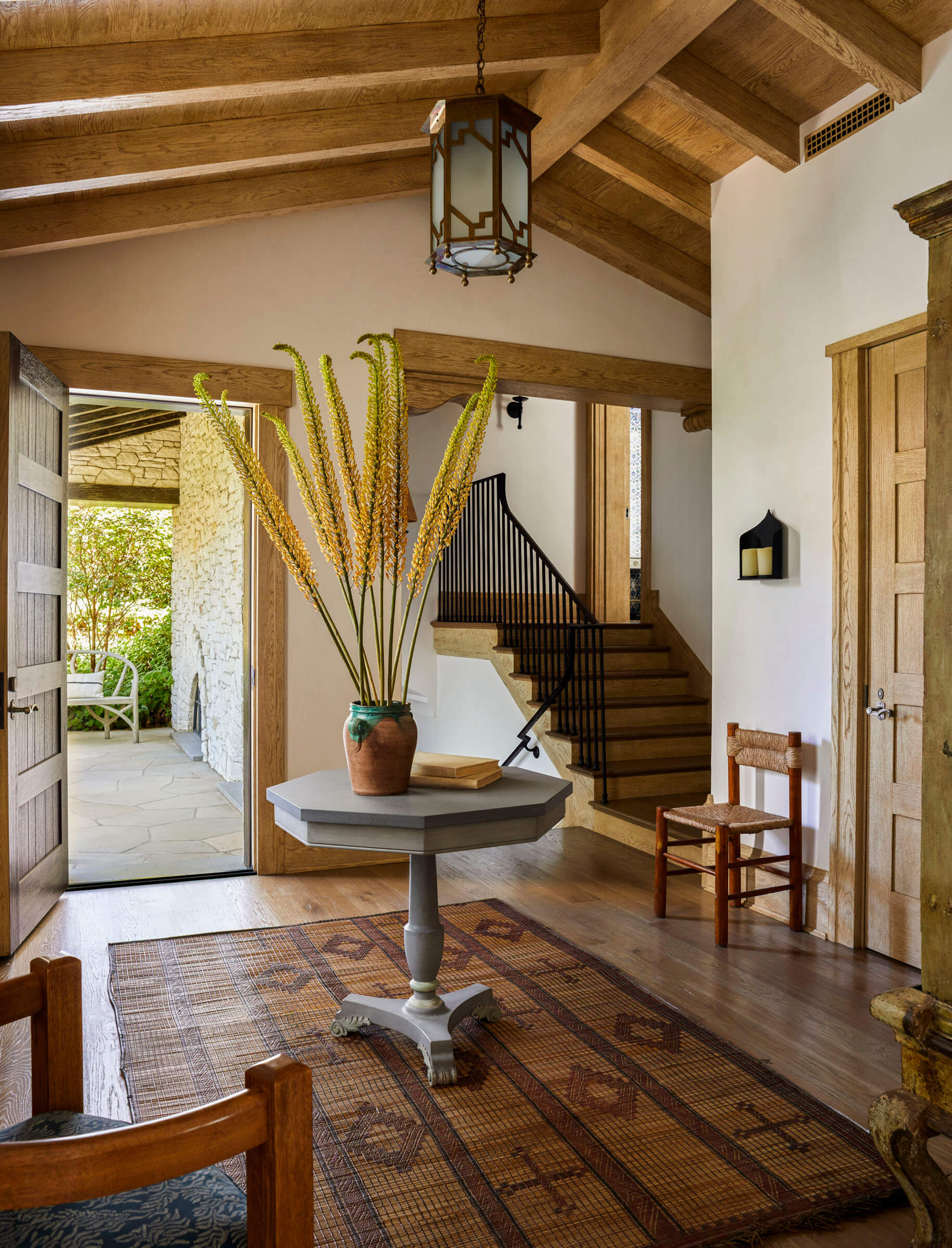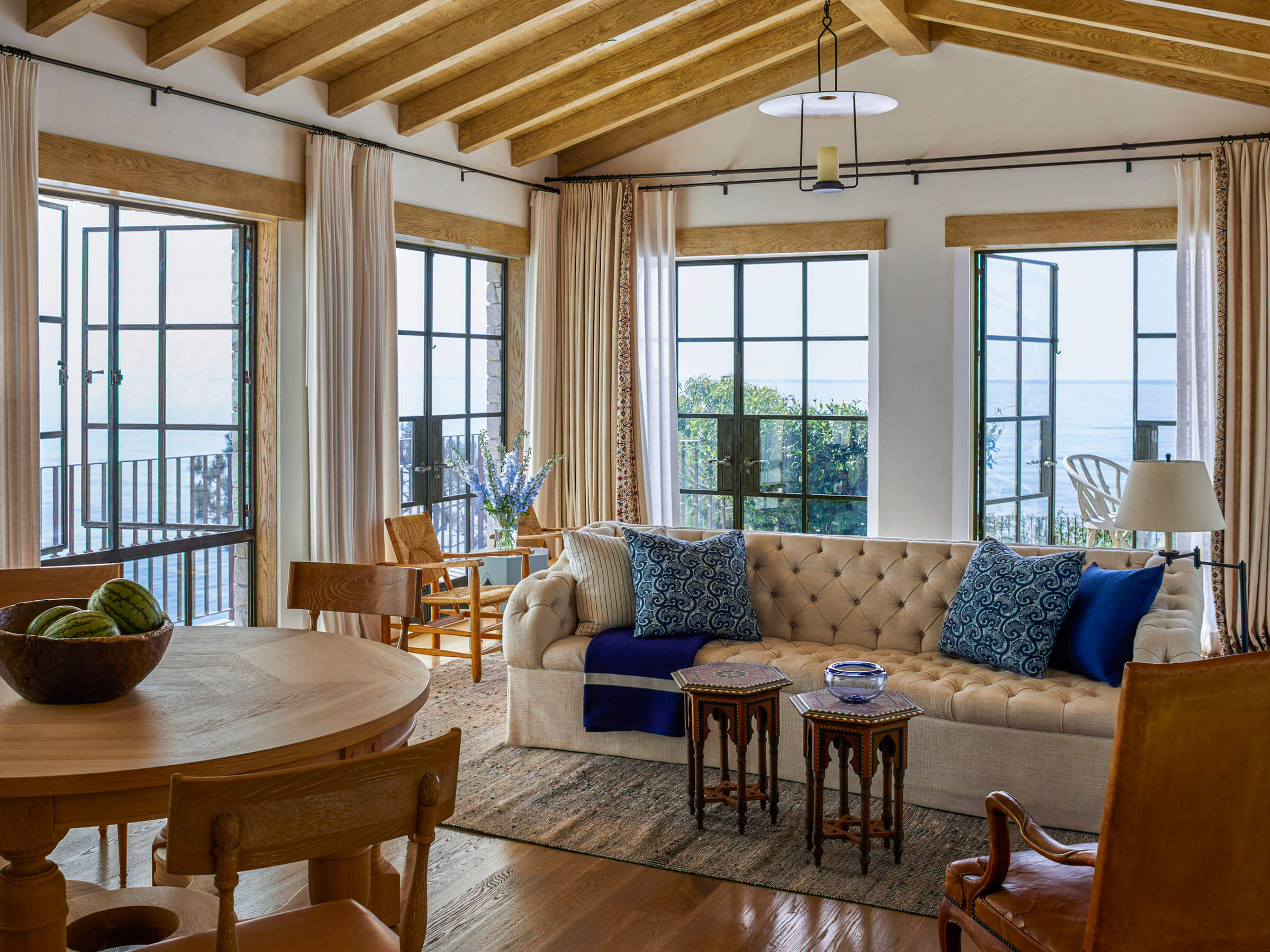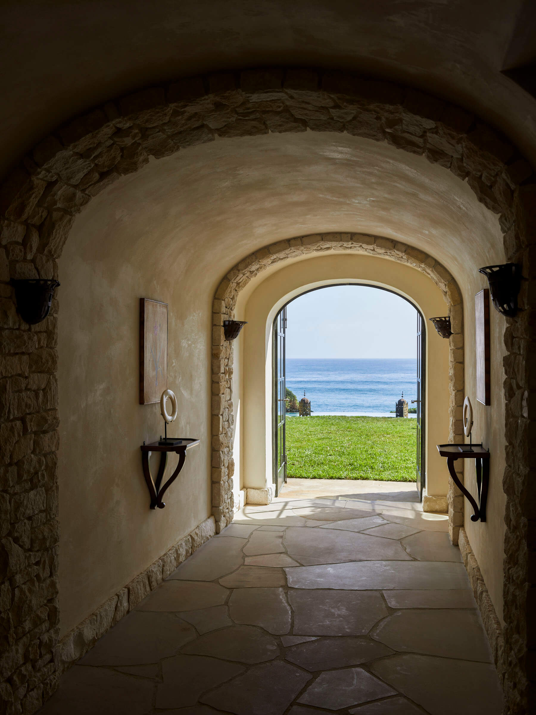 Inside, finishes and décor continue the Mediterranean allusions: simple, planar plaster walls are offset by intricately framed wood ceilings; the stone paving of the outdoor terraces flows into the more public indoor spaces. Near-zero sight line steel casement windows and doors are a distinctly Californian reference, borrowed from the region's Mediterranean revival of the 1920s and 30s.