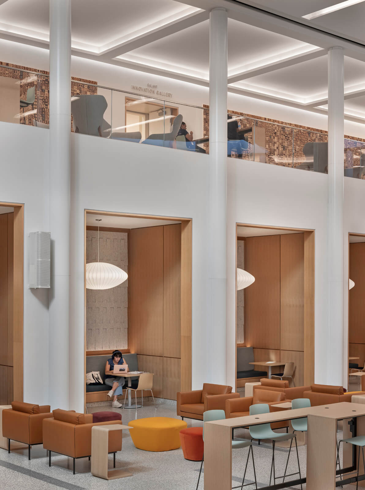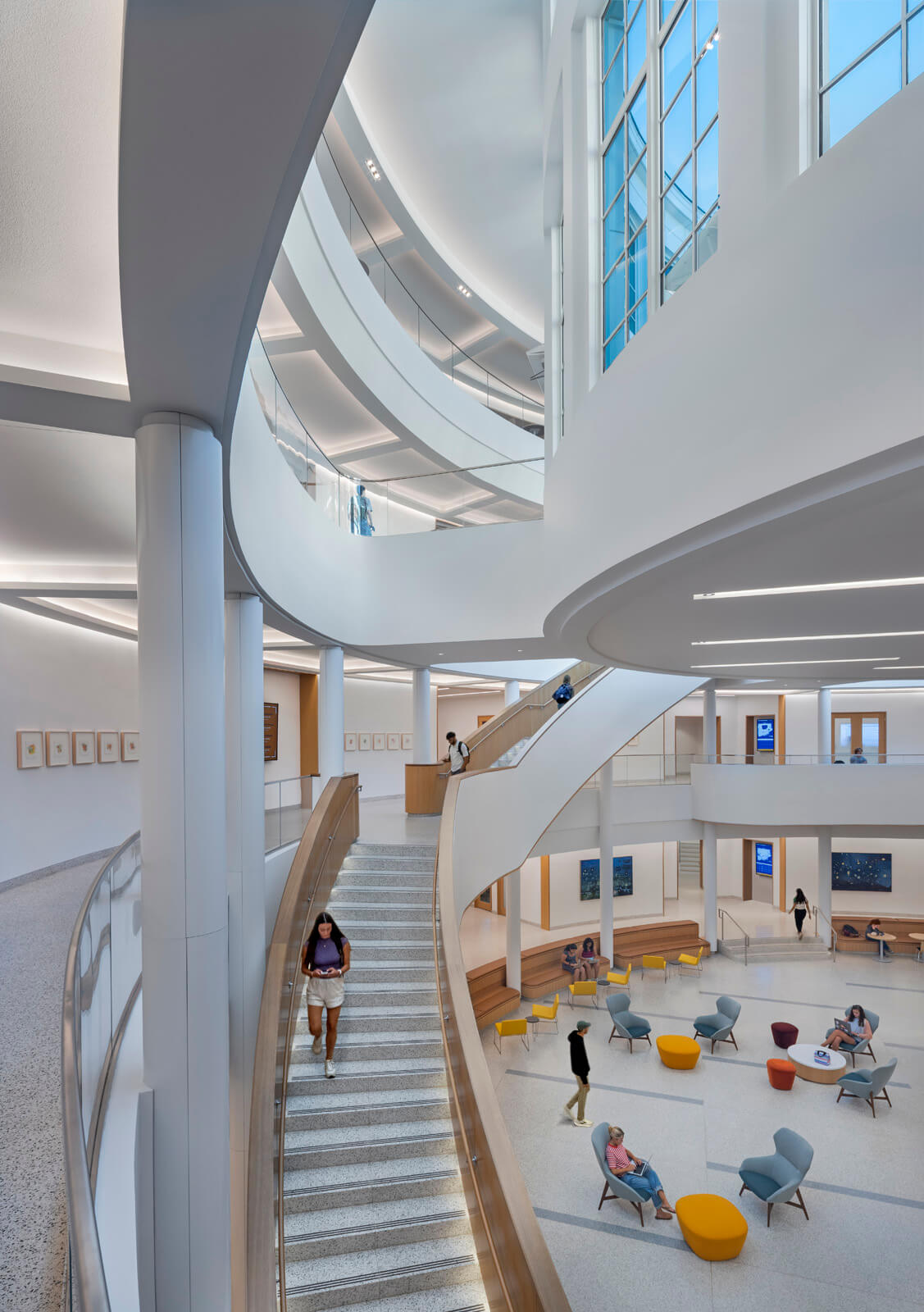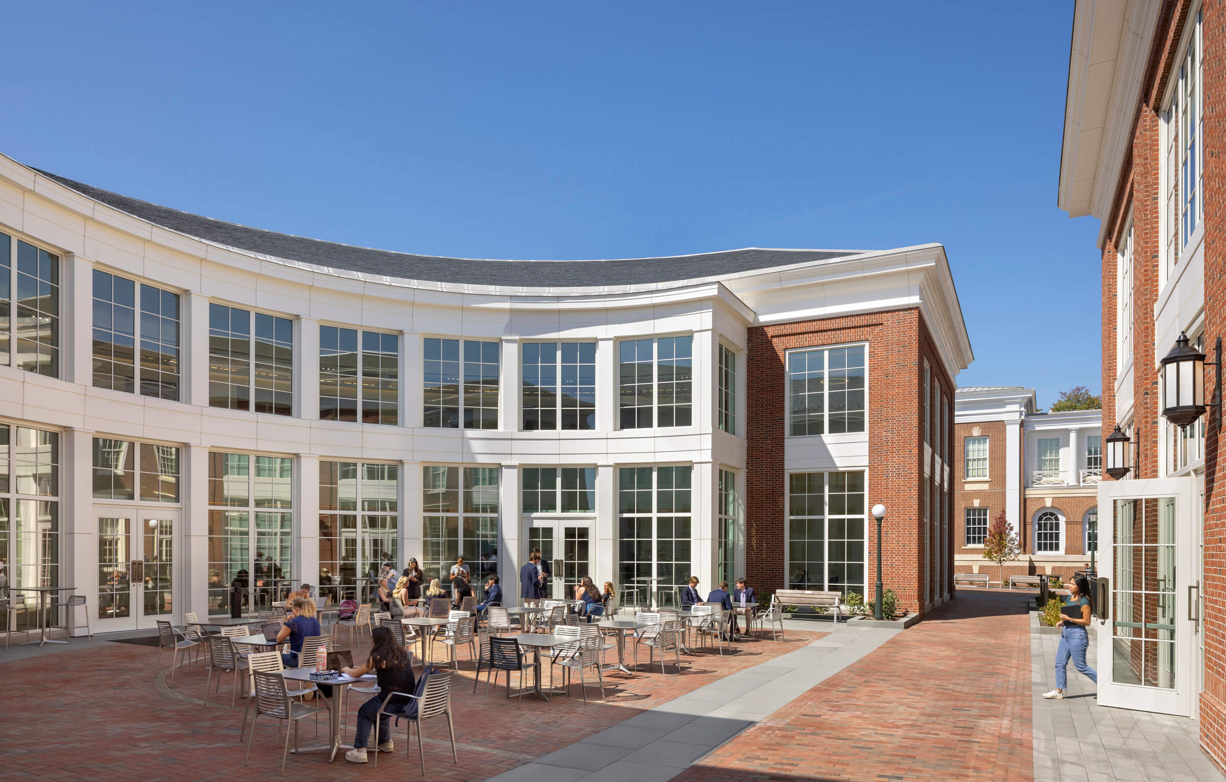 The expansion to the McIntire School of Commerce at The University of Virginia creates a prominent campus gateway along Jefferson Park Avenue and pedestrianizes circulation into the historic Grounds. The nearly 100,000-square-foot project provides a state-of-the-art home for the McIntire School’s innovation and data science programs, including active-learning classrooms, innovation and data labs, and collaboration spaces. A new atrium and outdoor courtyard facilitate bringing the school together for large events.