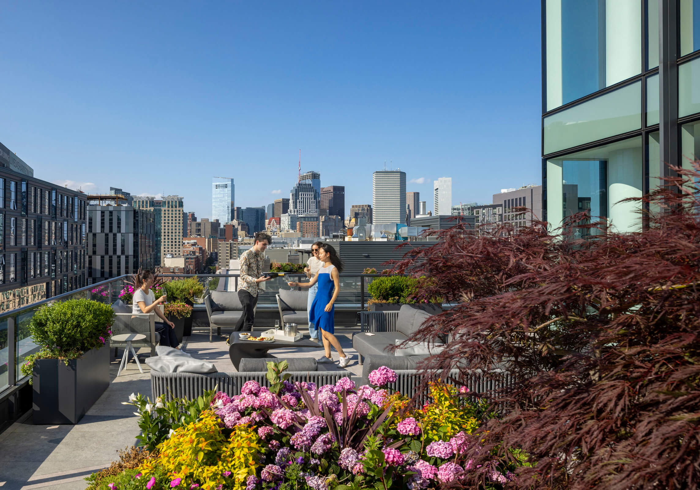 A seamless extension of Boston’s flourishing South End, The Quinn is designed with thoughtful luxuries and hospitality-focused services. The versatile condominiums offer dramatic window heights overlooking downtown and the Back Bay. With custom oak cabinetry, bronze metal reveals, and polished Calacatta stone, every detail of The Quinn has been considered to create refined and relaxed spaces for living. Outdoor spaces include a spa-like pool and a rooftop terrace.