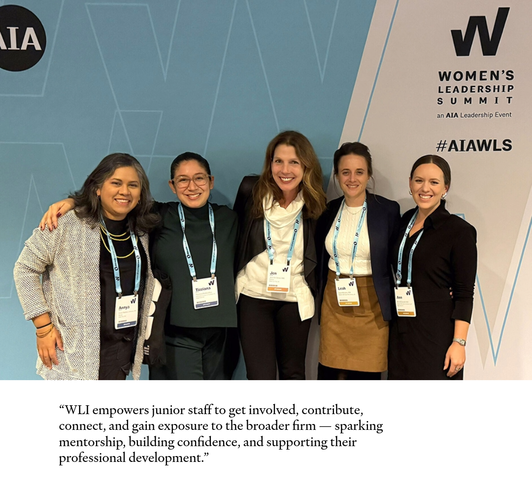 The new WLI began to look outward to connect with other firms and organizations, including the Beverly Willis Architecture Foundation (BWAF) and AIA Women in Architecture. WLI Committee leaders have participated, with Stone’s encouragement, in the BWAF Emerging Leaders Program and the AIA Women’s Leadership Summit.