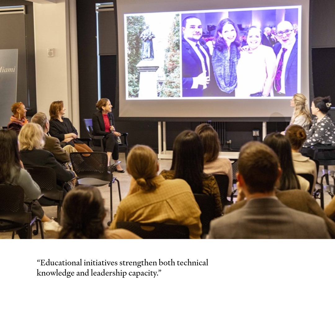 In 2025, an evening of short presentations – inspired by the Pecha Kucha style – featured Jennifer L. Stone, Kasey Tilove, Caitlin B. Getman, Gaylin M. Bowie, and Diana Yu. Representing senior, mid-level, and junior voices at RAMSA, the conversation celebrated and recognized women leaders in our workplace to inspire and empower employees through real-life stories of leadership and success.